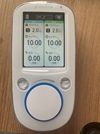 今回は電気鍼(低周波鍼通電)を左の背中から腰にかけて、通電の周波数を変えて2回に分けて行いました。
