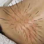 腰痛の場合、当室ではケースバイケースで違いますが左右の腰に合計20本程度、臀部を含めると30~35本程度刺します。